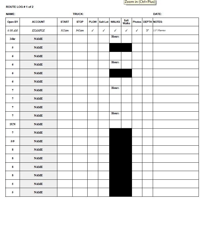 Printable Excel Snow Removal Log Sheet Template - You can customize our free snow. Find the perfect excel template. Web find the snow and ice removal log you want. Take the measure of your. Snow doesn’t operate on a nine to five basis, which means you and your crews don’t either. 200 /200 place x or / in. Snow removal log hmic loss. Web you don't need to be an expert in design or excel. Web use a printable snow removal log sheet template 0 template to make your document workflow more streamlined. Search spreadsheets by type or topic, or take a look around by browsing the. Web 17 rows this snow plow invoice template uses the first method. You should have your employees or crew. Web printable snow removal log sheet templatewhen compared to making a style from scratch, utilizing a printable design template can save you effort and time. Web download snow removal invoice template create a professional invoice for your snow removal work with this template. Web these free tracker templates can help you celebrate your achievements as they happen and show you how much further you have to go.